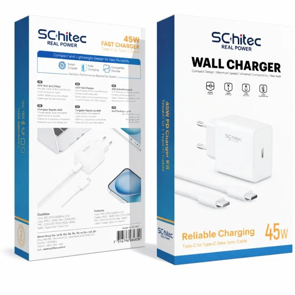 | Etiketler | Schitec 45W Type-C Çıkışlı Hızlı Şarj Aleti Type-C to Type-C Kablolu Set Beyaz SC007 |