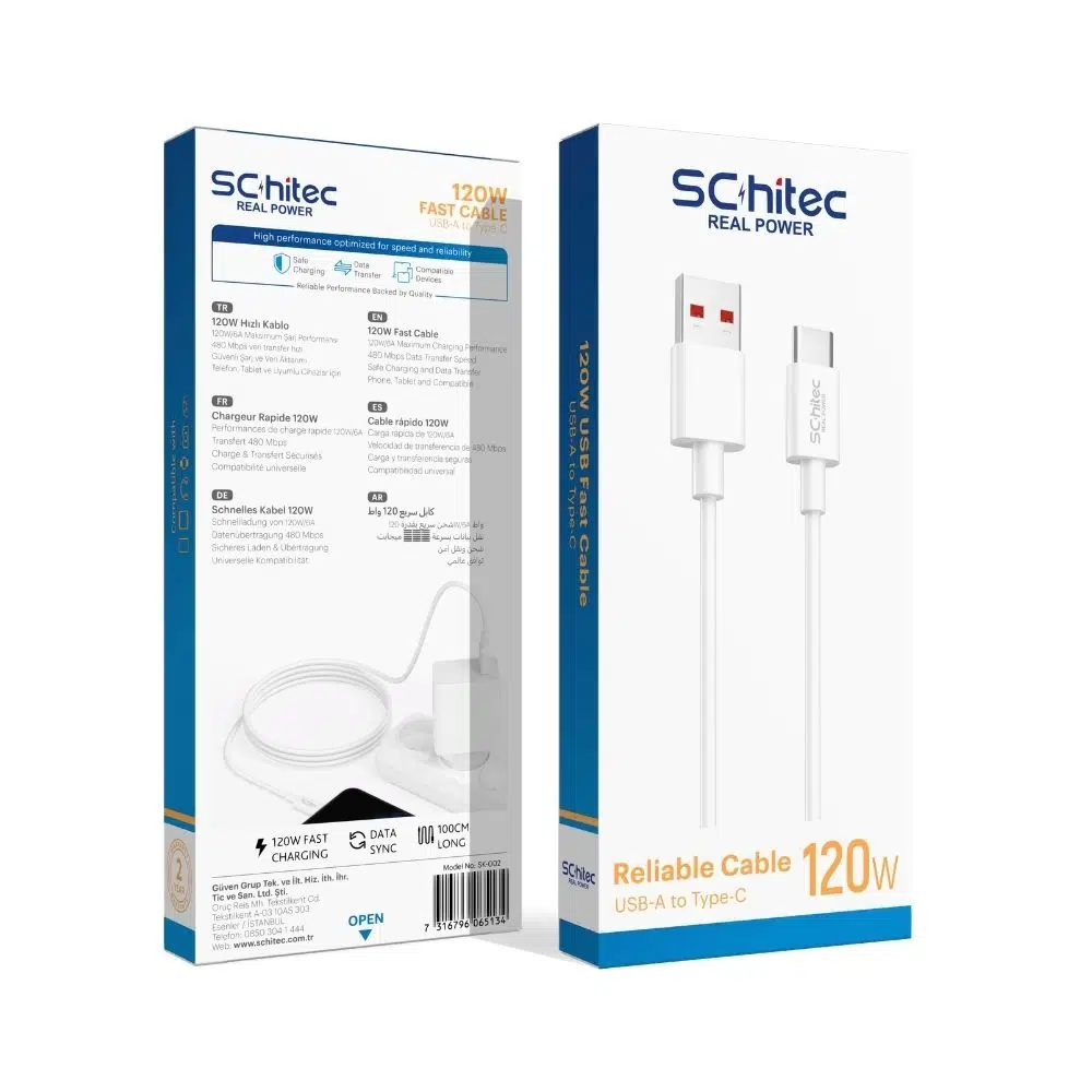 | Etiketler | SChitec 6A 120W USB-A to Type-C Hızlı Şarj ve Data Kablosu 1m Beyaz SK002 |